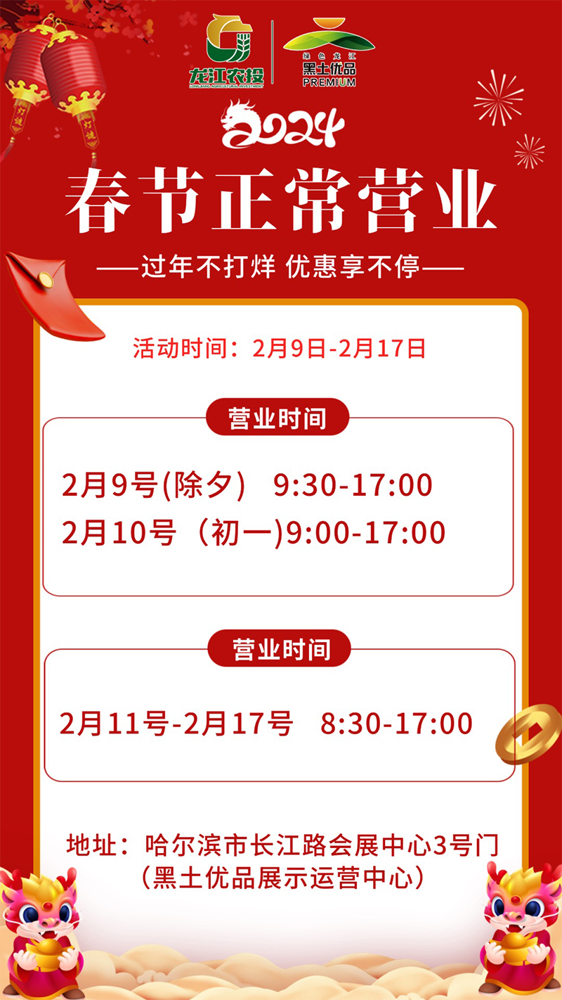 過(guò)年不打烊 優(yōu)惠享不停 黑土優(yōu)品展示運(yùn)營(yíng)中心春節(jié)正常營(yíng)業(yè)