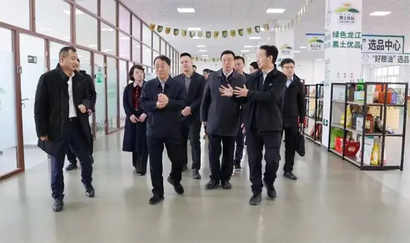 調(diào)研中,劉海城一行參觀了農(nóng)投數(shù)字農(nóng)業(yè)產(chǎn)業(yè)園“黑土優(yōu)品”展廳與“黑龍江好糧油”展廳,詳細了解了園區(qū)發(fā)展歷程、產(chǎn)業(yè)布局以及企業(yè)運營等情況,并對園區(qū)的發(fā)展成果給予了充分肯定。李國強對省商務(wù)廳一行表示歡迎,并對農(nóng)投集團基本情況進行了簡要介紹。