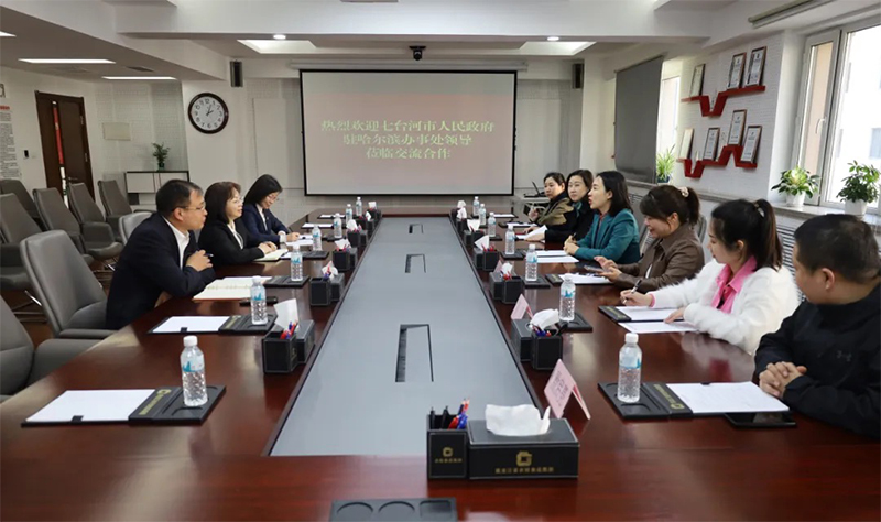 七臺河市人民政府駐哈爾濱辦事處、農(nóng)投食品集團(tuán)相關(guān)人員參加座談。
