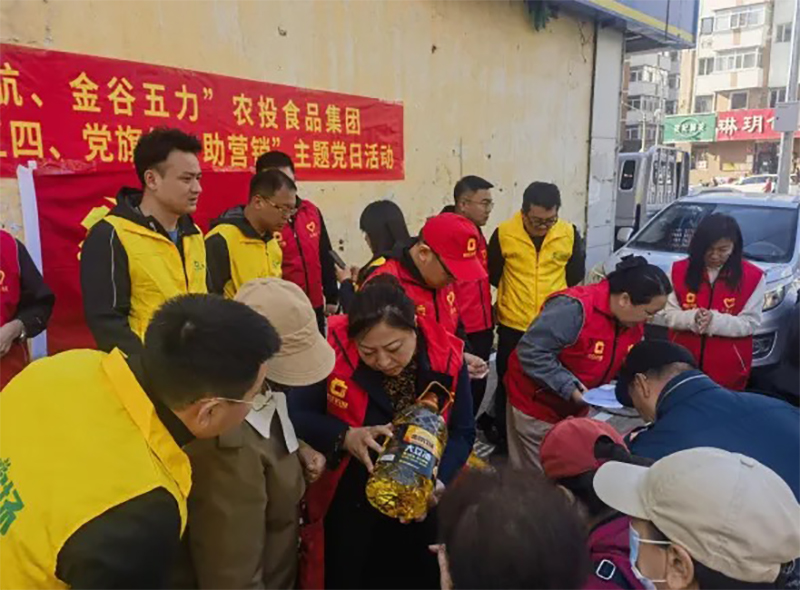 活動(dòng)中,在哈全體黨員及團(tuán)員統(tǒng)一著裝,組成先鋒隊(duì),化身宣傳達(dá)人,秉承著“讓龍江農(nóng)民更幸福、讓龍江農(nóng)業(yè)更強(qiáng)大、讓龍江農(nóng)產(chǎn)品更有市場競爭力”的初心使命,積極向廣大消費(fèi)者推廣介紹“金谷農(nóng)場”系列產(chǎn)品,讓消費(fèi)者以最實(shí)惠的價(jià)格享受“金谷農(nóng)場”品牌產(chǎn)品的綠色與健康,通過發(fā)揮黨員先鋒模范作用,推進(jìn)黨建經(jīng)營相融合,穩(wěn)固提升“金谷農(nóng)場”品牌的知名度和美譽(yù)度。