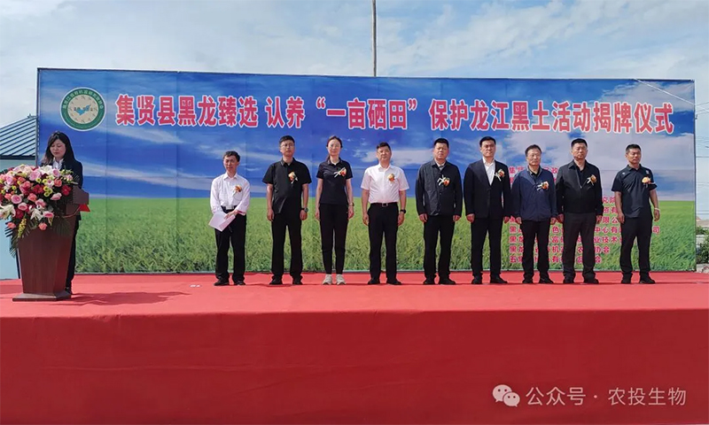 近日,黑龍江省農(nóng)投生物產(chǎn)業(yè)投資有限公司(以下簡(jiǎn)稱農(nóng)投生物)參加“黑龍臻選”認(rèn)養(yǎng)一畝硒田、保護(hù)龍江黑土公共平臺(tái)建設(shè)揭牌儀式。農(nóng)投生物黨委副書記、副總經(jīng)理馮喜生,副總經(jīng)理王璐參加活動(dòng)。集賢縣副縣長(zhǎng)張春偉及各相關(guān)單位、企業(yè)負(fù)責(zé)人出席儀式。
