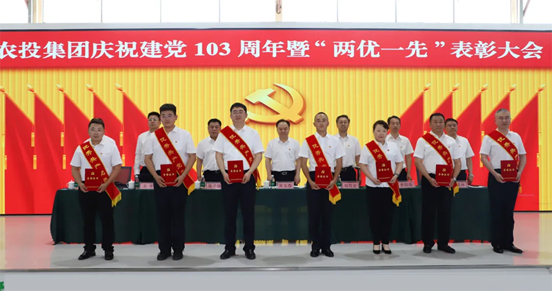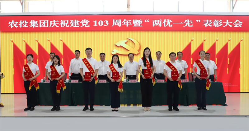 6月27日,農(nóng)投集團(tuán)在“黑土優(yōu)品”展示運(yùn)營(yíng)中心召開(kāi)慶祝建黨103周年暨“兩優(yōu)一先”表彰大會(huì),共同慶祝中國(guó)共產(chǎn)黨成立103周年,對(duì)在集團(tuán)改革發(fā)展過(guò)程中涌現(xiàn)出的先進(jìn)集體及個(gè)人予以表彰,激發(fā)動(dòng)員廣大黨員干部員工堅(jiān)定信念、開(kāi)拓創(chuàng)新,為實(shí)現(xiàn)農(nóng)投高質(zhì)量發(fā)展,推動(dòng)龍江農(nóng)業(yè)強(qiáng)省凝聚昂揚(yáng)向上的精神力量。農(nóng)投集團(tuán)黨委書(shū)記、董事長(zhǎng)常玉春出席會(huì)議并講話。黨委副書(shū)記、工會(huì)主席郝雪巖主持會(huì)議。