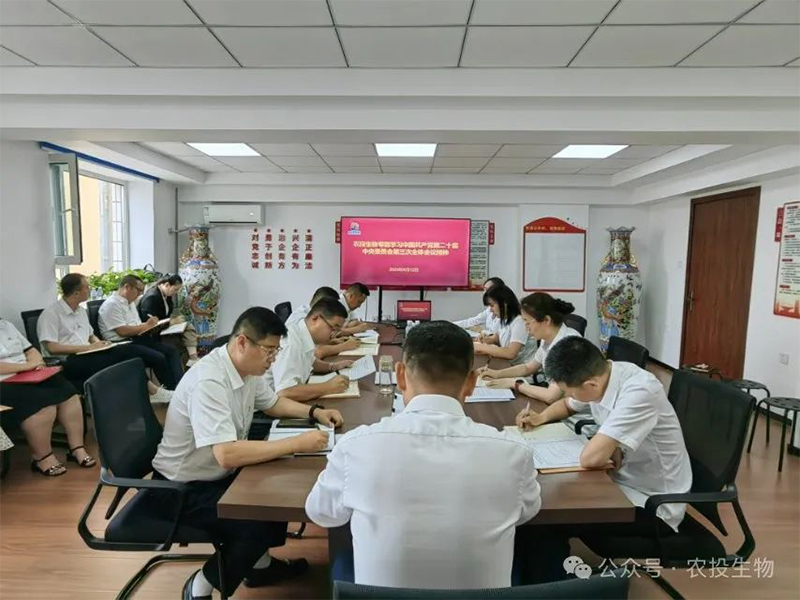 8月12日,農(nóng)投生物召開專題會議深入學(xué)習(xí)領(lǐng)會中國共產(chǎn)黨第二十屆中央委員會第三次全體會議精神,部署貫徹落實舉措。會上,傳達學(xué)習(xí)了中國共產(chǎn)黨第二十屆中央委員會第三次全體會議公報、《中共中央關(guān)于進一步全面深化改革、推進中國式現(xiàn)代化的決定》及習(xí)近平總書記關(guān)于《中共中央關(guān)于進一步全面深化改革、推進中國式現(xiàn)代化的決定》的說明。