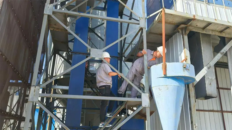 向陽(yáng)川糧庫(kù)工作人員檢修烘干塔