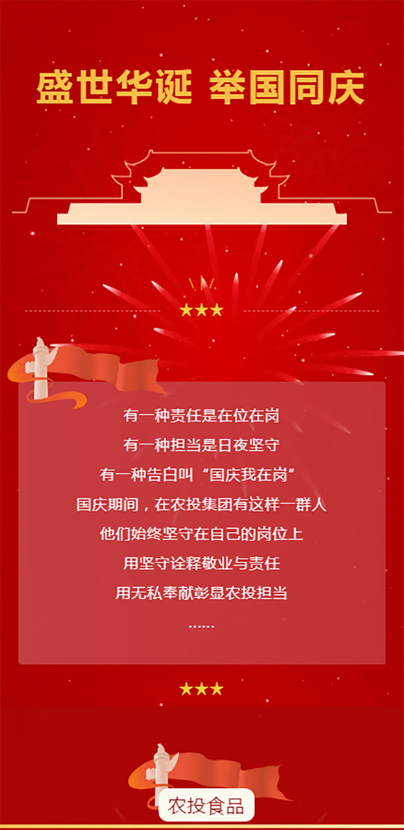 國(guó)慶期間,黑龍江省農(nóng)投食品集團(tuán)有限公司廣大干部員工爭(zhēng)分奪秒,奮戰(zhàn)在生產(chǎn)經(jīng)營(yíng)一線,從辦公區(qū)到生產(chǎn)車間,處處洋溢著祥和有序的工作氛圍,他們?cè)谄椒矋徫簧夏?,在各個(gè)角落里發(fā)光發(fā)熱,用實(shí)際行動(dòng)詮釋著“節(jié)日我在崗,工作不松勁”的奉獻(xiàn)精神,用始終如一的堅(jiān)守,詮釋國(guó)資國(guó)企擔(dān)當(dāng),用拼搏奮斗的身姿,書寫公司發(fā)展精彩答卷。