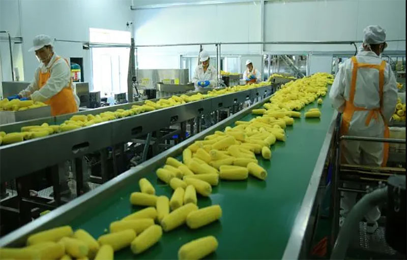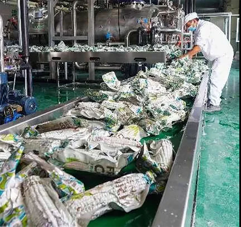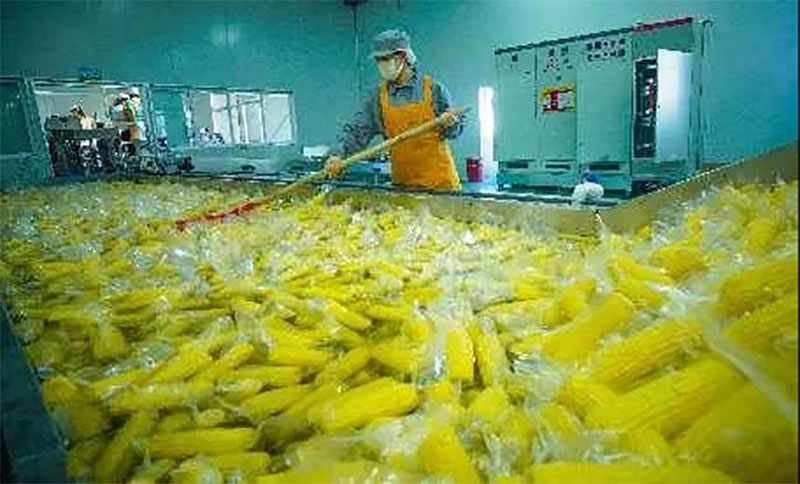 國(guó)慶期間,因?yàn)檗r(nóng)產(chǎn)品行業(yè)的特殊性,龍疆金谷人無(wú)法休息,工廠里,新鮮采摘的甜玉米堆滿(mǎn)操作間,生產(chǎn)車(chē)間滿(mǎn)是鮮甜玉米誘人的甜香,工人們穿著統(tǒng)一工裝,在各項(xiàng)加工設(shè)備前進(jìn)行著操作。鮮玉米通過(guò)機(jī)械傳送帶進(jìn)入加工流水線(xiàn),在經(jīng)過(guò)脫皮、分揀、蒸煮、消毒、清洗等多道工序后最終成為待售的鮮玉米。