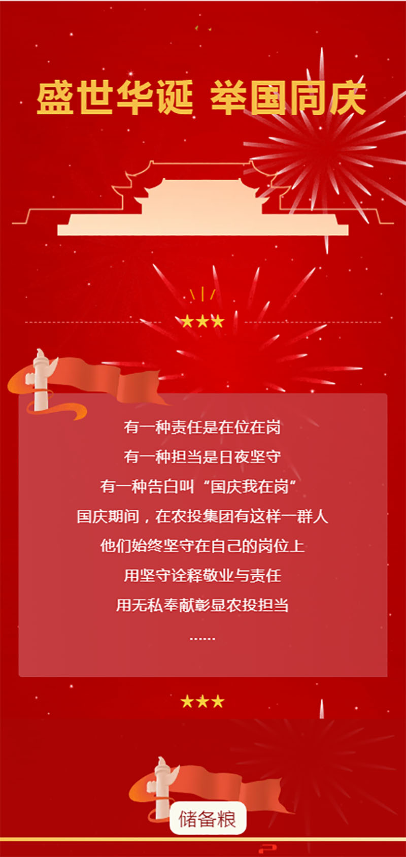 回首過(guò)去,省儲(chǔ)人秉承初心、牢記使命、砥礪奮進(jìn);展望未來(lái),省儲(chǔ)人壯懷激越、勇毅自信、奮勇前進(jìn),在中華人民共和國(guó)成立75周年之際,用不懈奮斗向祖國(guó)獻(xiàn)禮。