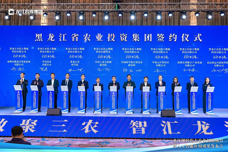 會上,農(nóng)投大數(shù)據(jù)公司與中國科學(xué)院計(jì)算技術(shù)研究所、工聯(lián)院網(wǎng)絡(luò)所、中國電子云、黑龍江省科學(xué)院、深開鴻、華為技術(shù)有限公司、致遠(yuǎn)互聯(lián)、騰訊云、商湯科技、黑龍江移動(dòng)、哈爾濱聯(lián)飛、鄭州華糧等12家單位簽署了戰(zhàn)略合作協(xié)議,標(biāo)志著各方將在智慧農(nóng)業(yè)領(lǐng)域展開深度合作,共同推動(dòng)黑龍江省農(nóng)業(yè)數(shù)智化進(jìn)程。發(fā)布會現(xiàn)場還展示了“伏羲農(nóng)場”無人智慧農(nóng)機(jī)裝備和無人機(jī)試飛、水肥一體化等設(shè)備,展現(xiàn)了智慧農(nóng)業(yè)的先進(jìn)技術(shù)和應(yīng)用成果。