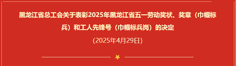 農(nóng)投集團榮獲2025年黑龍江省五一勞動獎狀和工人先鋒號兩項殊榮
