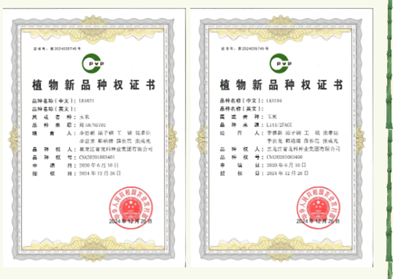 近日,黑龍江省龍科種業(yè)集團有限公司在生物育種領域取得重大突破,成功獲得由農業(yè)農村部頒發(fā)的玉米自交系LKA104和LKA821兩項植物新品種權證書。這是龍科種業(yè)在玉米種質資源創(chuàng)新道路上的又一里程碑,標志著龍科種業(yè)在品種研發(fā)和自主知識產權布局方面邁出了堅實步伐!