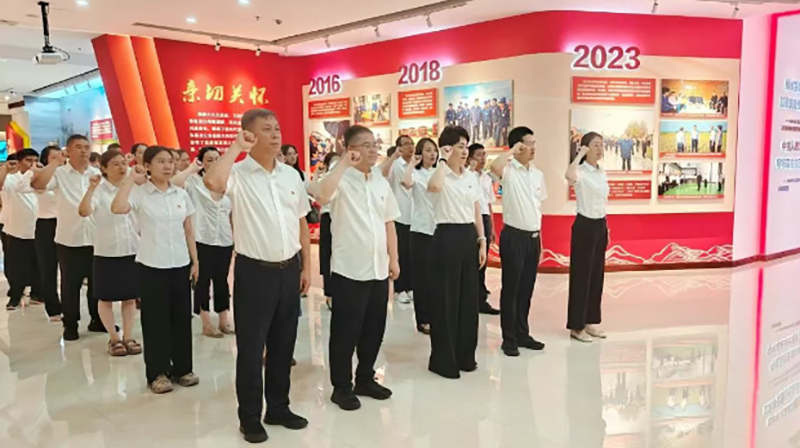 參觀結(jié)束后,全體黨員面向鮮紅的黨旗,莊嚴(yán)舉起右拳,重溫入黨誓詞。鏗鏘有力的誓言在展廳內(nèi)久久回蕩,不僅是對初心使命的再次宣示,更是對廉潔從政的鄭重承諾,彰顯了黨員干部堅(jiān)守黨性原則、永葆清廉本色的堅(jiān)定決心。