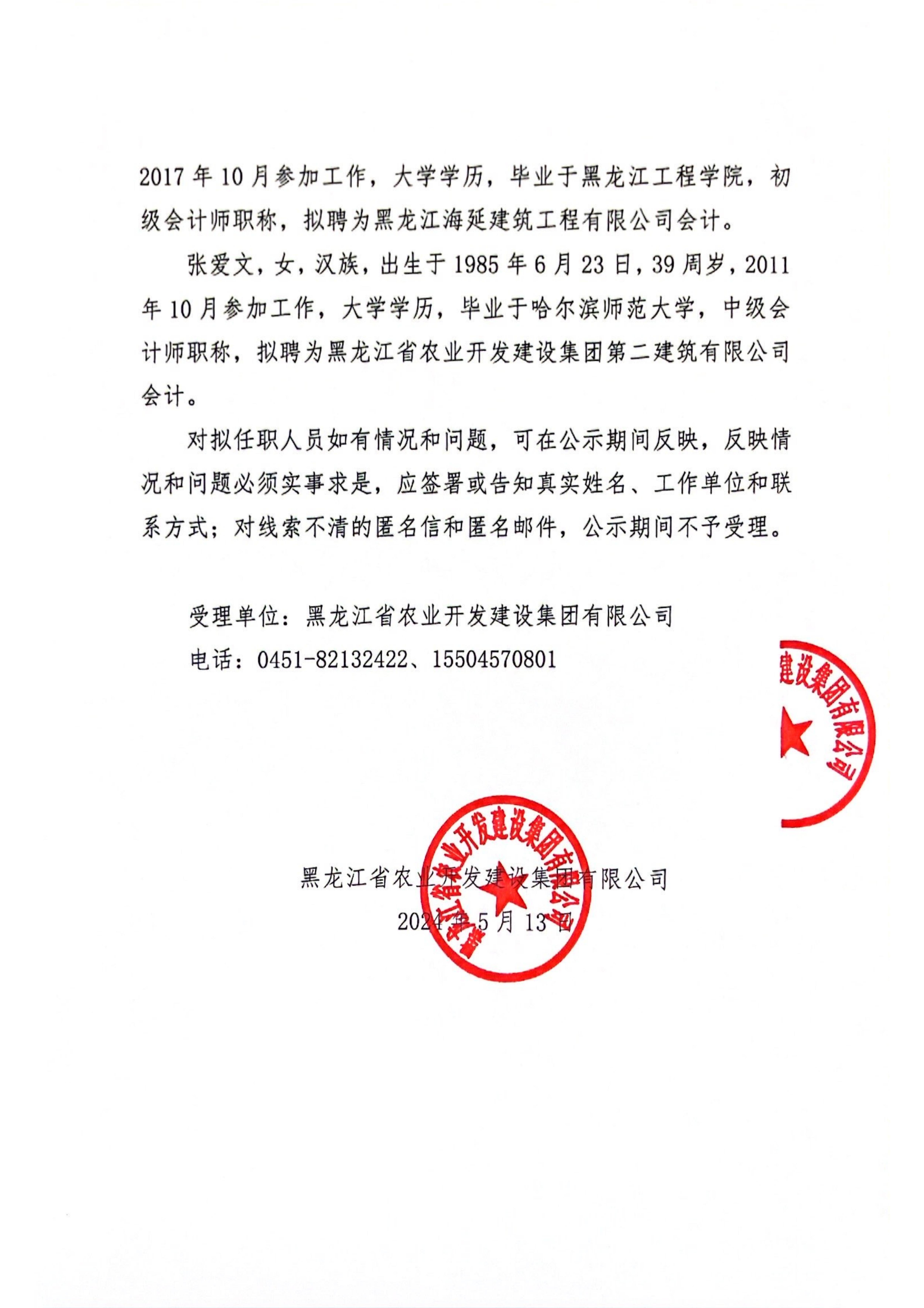 黑龍江省農(nóng)業(yè)開(kāi)發(fā)建設(shè)集團(tuán)有限公司權(quán)屬公司關(guān)于市場(chǎng)化招聘擬聘用人員公示