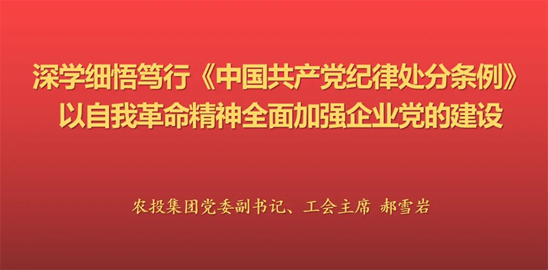 為深入貫徹黨中央部署和省委總體安排,推進(jìn)黨紀(jì)學(xué)習(xí)教育不斷走深走實,5月24日,農(nóng)投集團(tuán)黨委副書記、工會主席郝雪巖到黨建聯(lián)系點黑龍江省農(nóng)投生物產(chǎn)業(yè)投資有限公司開展工作調(diào)研指導(dǎo)工作,了解各項工作進(jìn)展和企業(yè)經(jīng)營發(fā)展情況,并以《深學(xué)細(xì)悟篤行<中國共產(chǎn)黨紀(jì)律處分條例>,以自我革命精神全面加強(qiáng)企業(yè)黨的建設(shè)》為題作專題黨課輔導(dǎo)。農(nóng)投生物黨委書記、董事長武曉東參加主持會議。