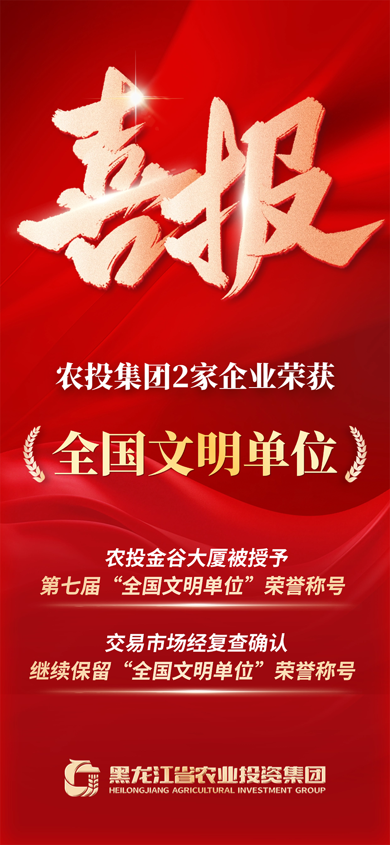 “全國文明單位”既是榮譽,更是責(zé)任。農(nóng)投集團將珍惜榮譽、再接再厲,以更高標(biāo)準(zhǔn)、更嚴(yán)要求,堅持不懈用習(xí)近平新時代中國特色社會主義思想凝心鑄魂,充分發(fā)揮“全國文明單位”的示范引領(lǐng)作用,在服務(wù) “三農(nóng)”、助力鄉(xiāng)村振興的征程中勇挑重?fù)?dān),為龍江農(nóng)業(yè)強省建設(shè)貢獻農(nóng)投力量。