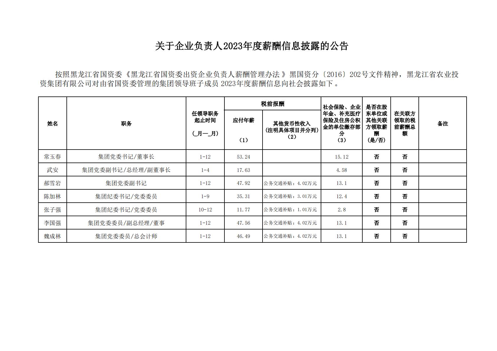 關(guān)于企業(yè)負(fù)責(zé)人2023年度薪酬信息披露的公告